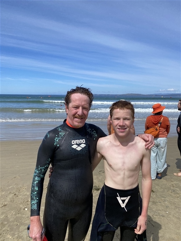 Course spot on 1800m, (including section from beach to first buoy). Small surf break. First race with Ollie, who was the youngest competitor, (and he nearly beat me!)