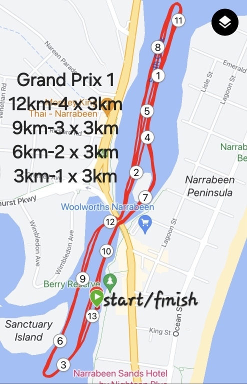 Predicted winds of 30k meant the inside course today 4 x 3km loops.