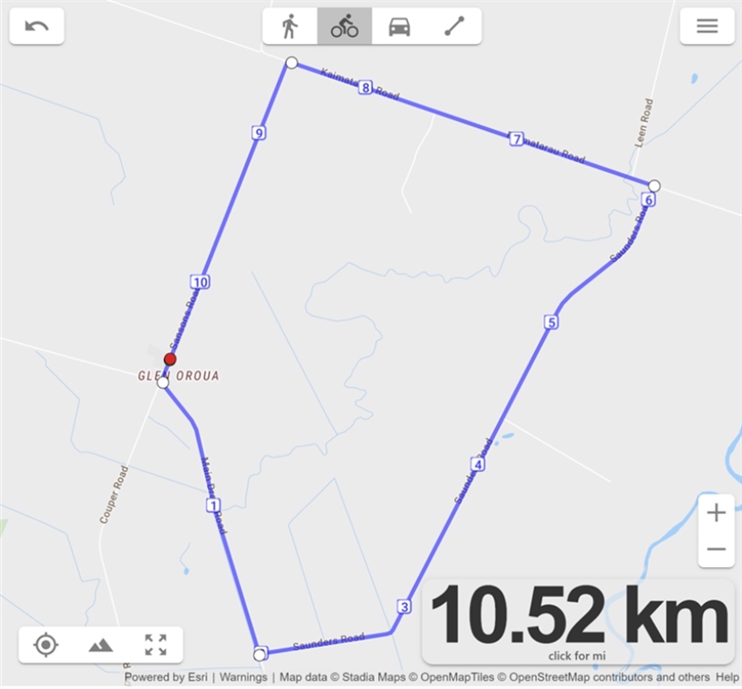 The race starts opposite Glen Oroua School and goes in an anti-clockwise direction.