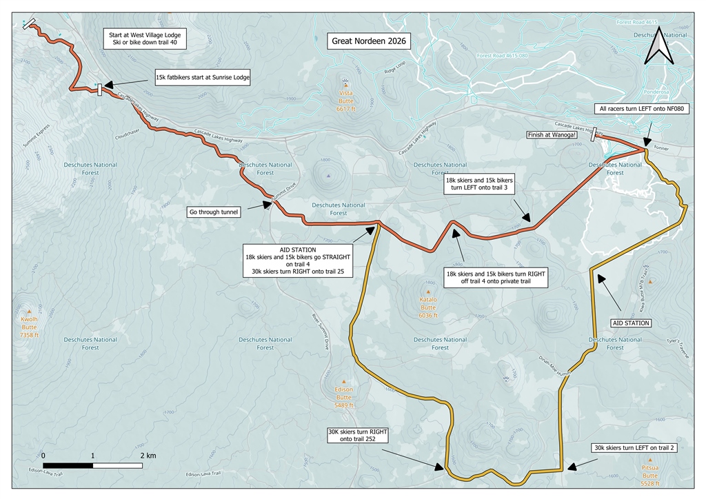 These days, the Great Nordeen is significantly less grueling than the races Nordeen won in 1930s. The courses are groomed specifically for the event and give skiers and fat bikers a once-a-year opportunity to cruise through hemlock forests, over lava flows and around the buttes of the Deschutes National Forest on their journey to the finish at Wanoga Sno-Park. This is a unique opportunity to enjoy skiing or fat biking on a special course as part of a Central-Oregon tradition.