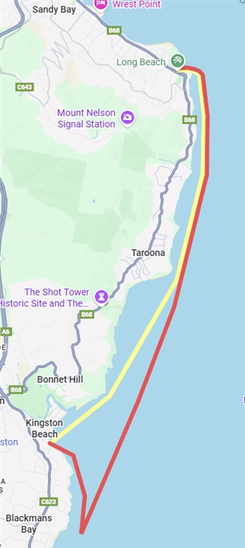 Course will be between Kingston Beach and Sandy Bay - direction to be determined once wind conditions are known.