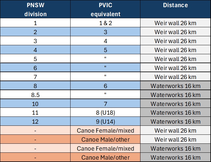 The race format this year is based on PNSW divisions (with classes for canoes).